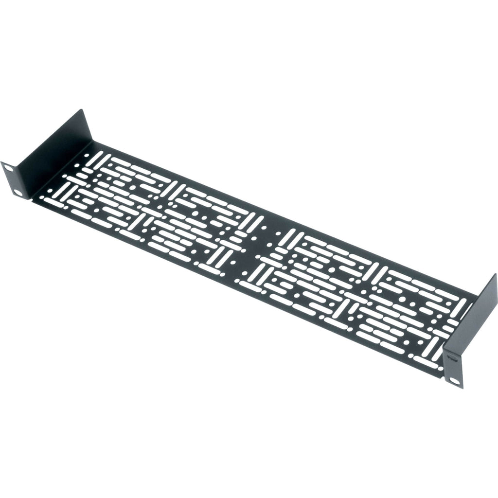 The included full-width 19" shelf is designed to hold small devices with nearly any mounting screw hole pattern.