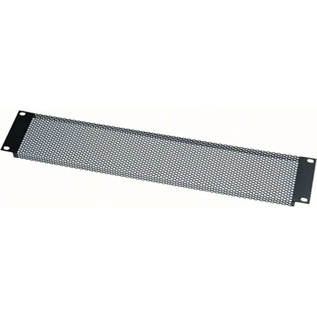 The 2-Space Vent Panel is made from 16-gauge perforated steel and is protected by a durable black powder coat finish. Flanged for strength, this panel is perfect for a heavy-duty rack system that houses equipment that needs extra cooling.