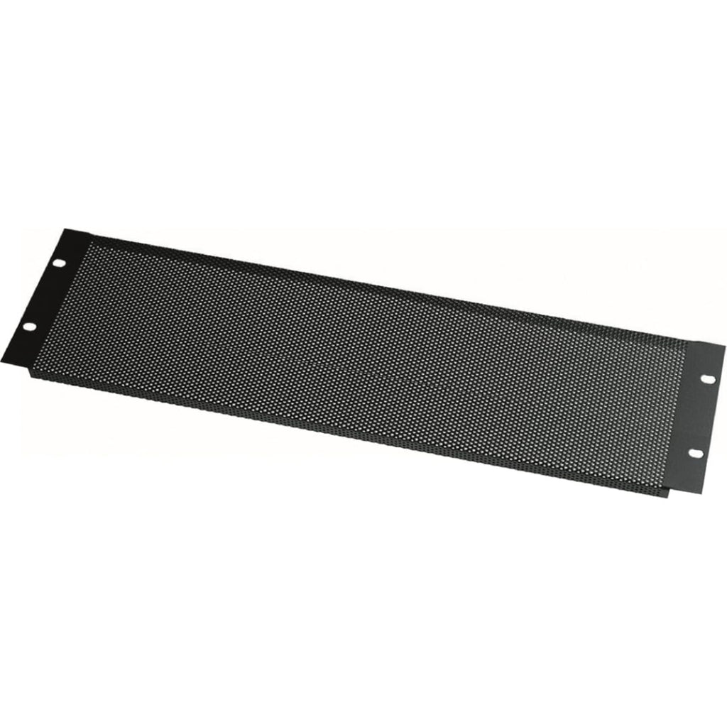 The VTF3 3U Tight-Pattern Vented Blank Panel from Middle Atlantic is a vented blank panel designed for use in a standard 19" equipment rack. Use this blank panel to cover unsightly open space in your rack and protect your equipment from dust and other foreign debris without restricting air movement. The panel's vented face promotes adequate airflow to help maintain low operating temperatures in your enclosure, but also features a tight hole pattern for improved aesthetics and restricted view inside of your rack. It is constructed of steel with flanged edges, features a black power-coat finish, and occupies 3U of rack space.