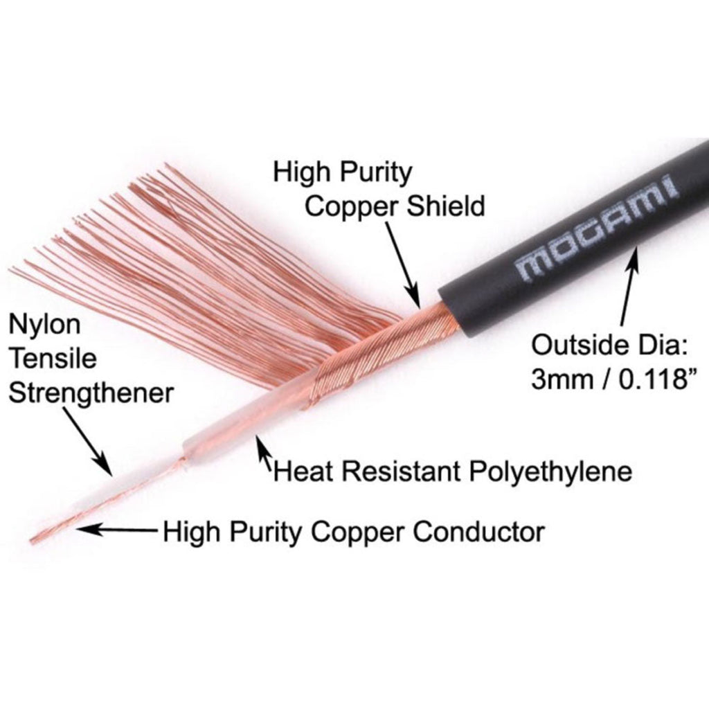 These cables show Mogami's manufacturing and cable design expertise in creating an economical unbalanced cables which maintain necessary mechanical strength (tensile strength and long flex life) and flexibility for a microphone cable.