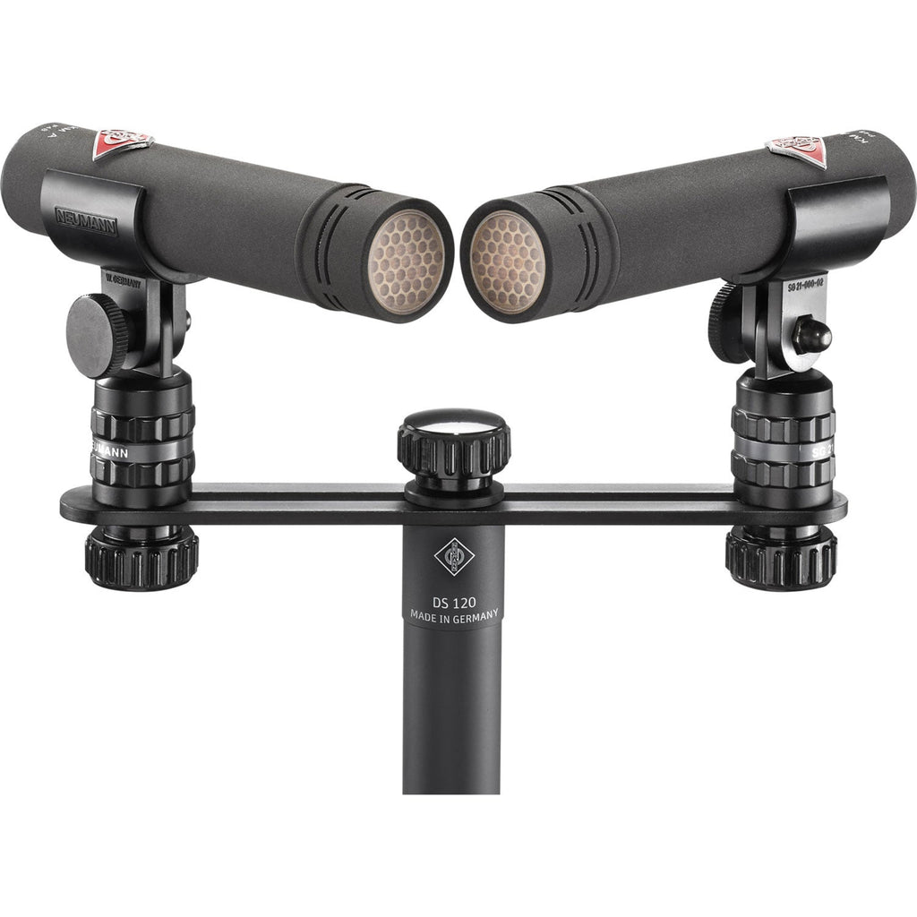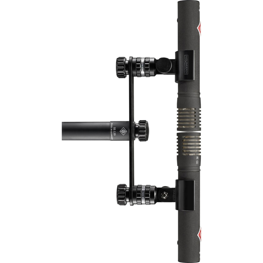 The DS 120 has a 150 mm long support bar with two movable 1/2" threaded studs. Two microphones in their mounts can be attached. Any space or angle between the microphones is freely adjustable.