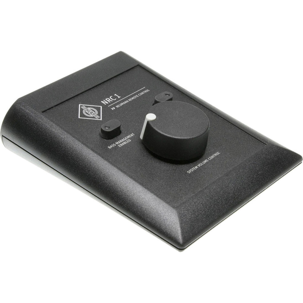 This NRC 1 Remote Control for Sound System Volume made by Neumann is a simple hardware remote used to control the system volume, LFE gain, and bass management bypass. This unit is recommended for KH 810 and KH 870 active studio subwoofers. A Neumann remote cable must be purchased separately.