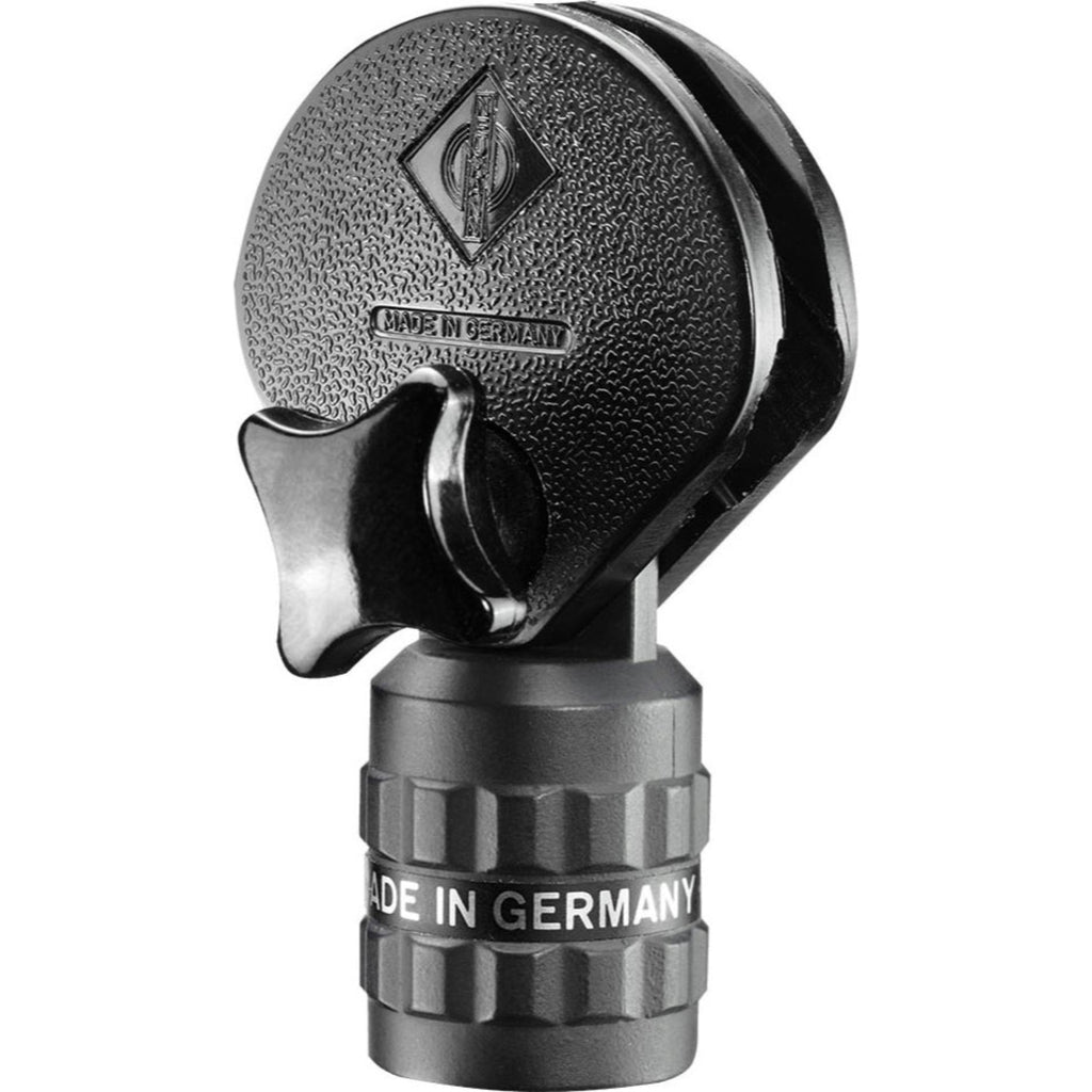 The Neumann SG100 is a swivel mount designed to attach the KM 100 series, KVF extensions to microphone stands, tripods etc. The SG100 has a 5/8"-27 thread, plus a thread adapter to connect to 1/2"- and 3/8" stands.