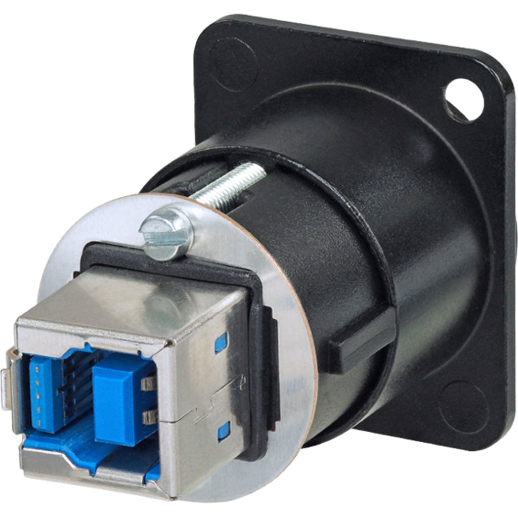 The NAUSB3-B is a reversible USB 3.0 feed through adapter. The standardized D-shape housing of the adapter fits into conventional patch panels and offers an additional protection for the connector.