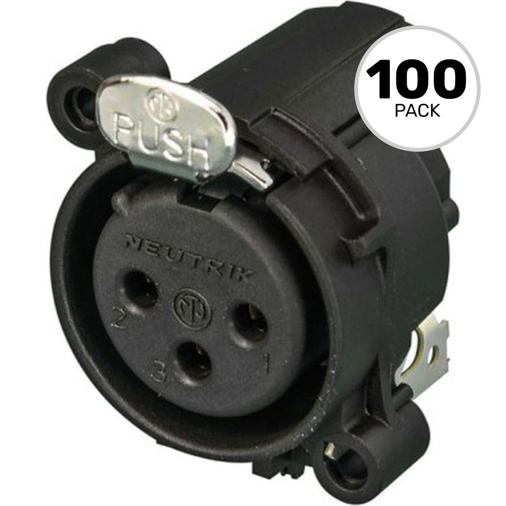 Female 3-Pin XLR Receptacle, Horizontal PCB Mount - Full Box of 100 Connectors