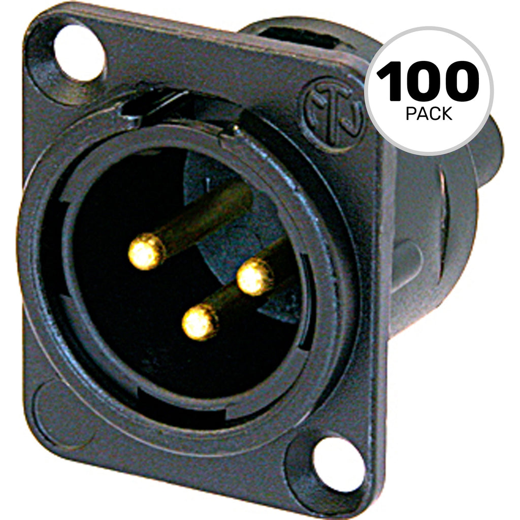 Neutrik NC3MD-S-1-B Male 3-Pin XLR Chassis Connector with Screw Terminals (Black/Gold, Box of 100)