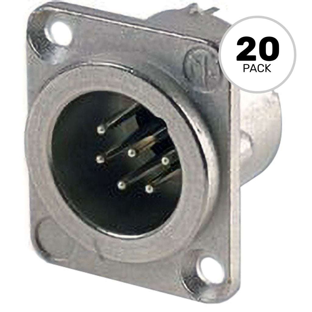 Male 6-Pin XLR Receptacle, DLX Series, Solder Cups, Nickel Housing, Silver Contacts - Full Box of 20 Connectors