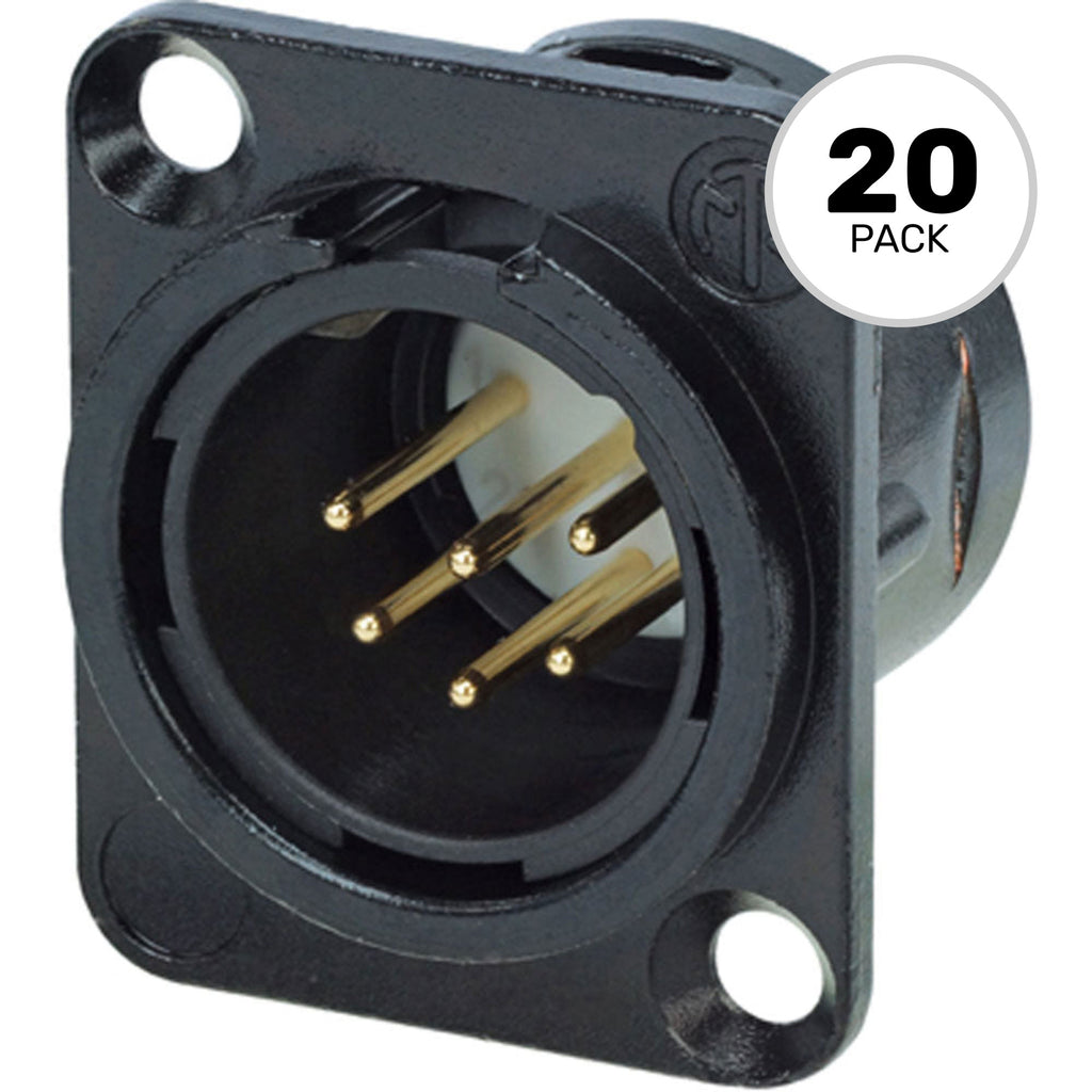 Male 6-Pin XLR Chassis Mount Connector with Switchcraft Pin Layout, DL1 Series, Black Housing, Gold Contacts