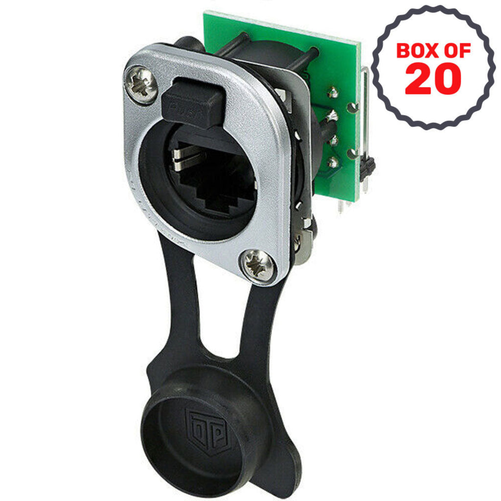 Horizontal Cat5e PCB Panel Mount RJ45 Receptacle, Combined with Sealing Kit - Full Box of 20 Connectors