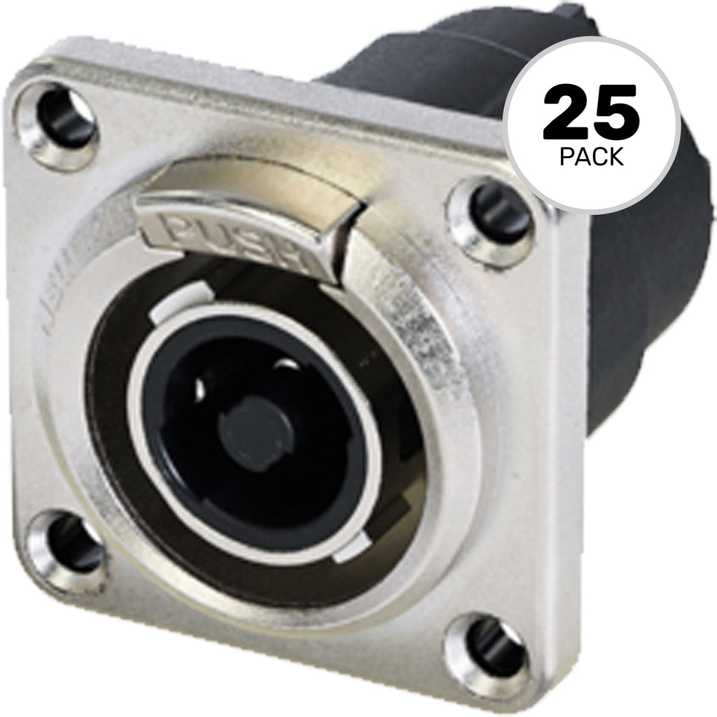4 Pole Female speakON Chassis Connector, Nickel Metal Housing, Solder Contacts or 1/4" Flat Tabs, Countersunk Thru Holes - Full Box of 25 Connectors