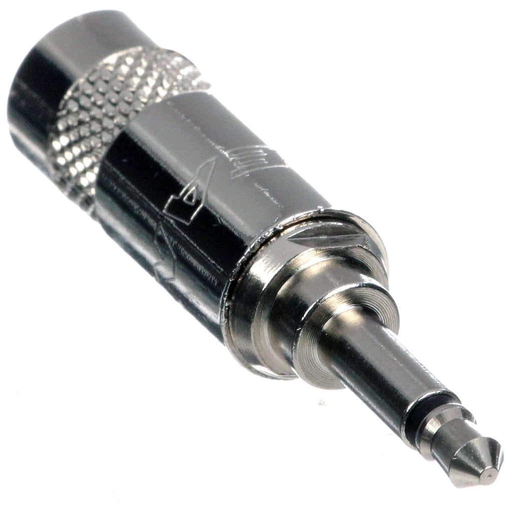 2 pole 3.5 mm plug, metal handle with crimp strain relief, large cable outlet