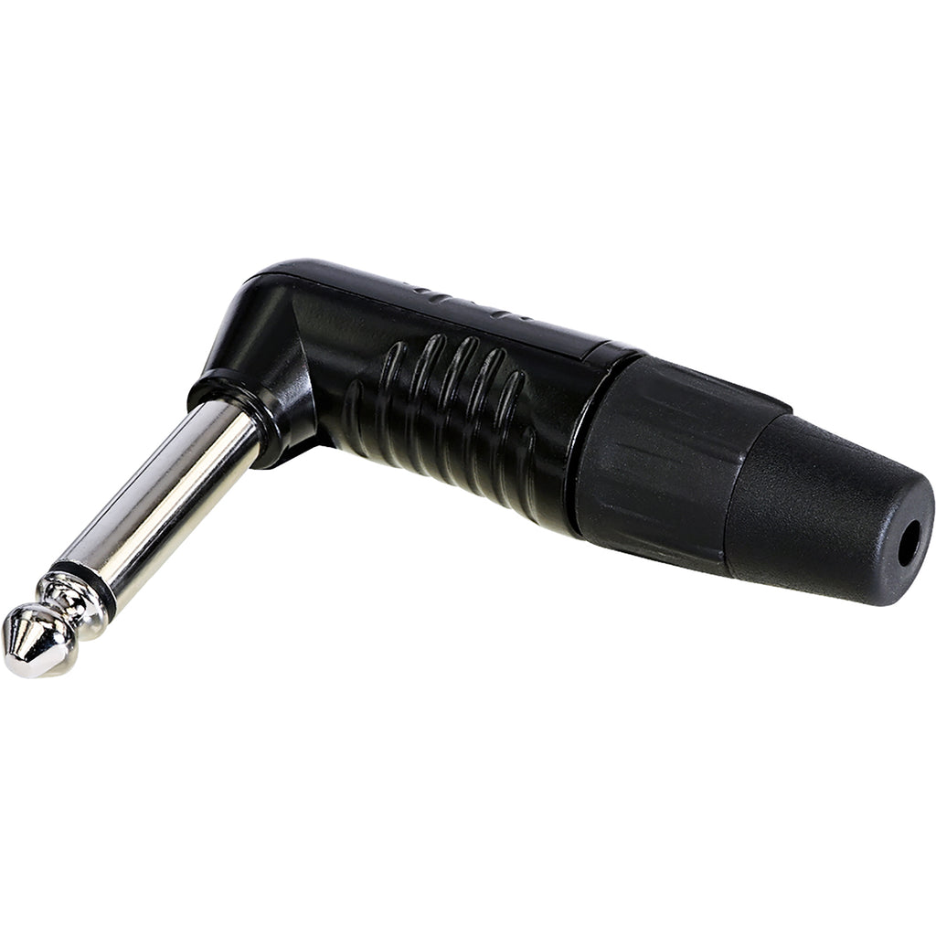 2 pole 6.35 mm right-angle plug, black plated housing, nickel plated contacts. Single packed.