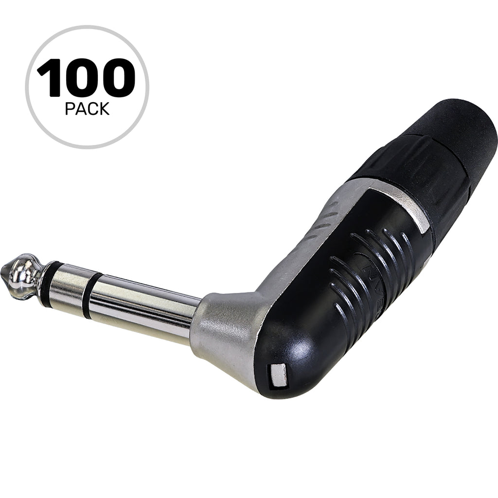 1/4" TRS Stereo Right-Angle Plug - Nickel Handle, Nickel Contacts - Full Box of 100 Connectors