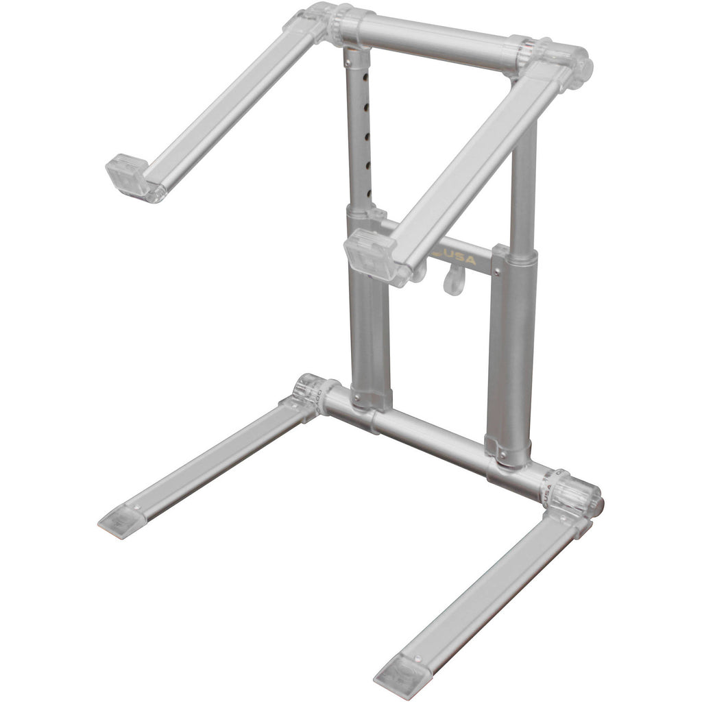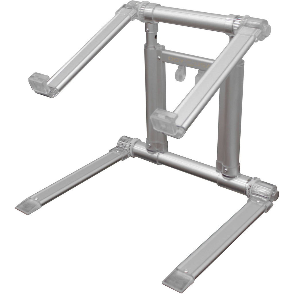 The lightweight mac silver LStand 360 Ultra Folding Laptop Stand from Odyssey Innovative Designs is built to give you the flexibility needed for using your laptop at an angle that best suits your work environment. The stand offers two arms which can quickly be locked in place for holding a laptop. The arms can also be separately released and rotated up to 360° when you want to reposition them for the most comfortable setup. The base can also lock, release, and rotate in the same way. The stand's height may be extended from 11 to 16", while the arm hooks extend from 3/4 to 1-1/2" to provide extra stability at steeper angles. As an added safeguard, the LStand 360 ships with four rubber grip stickers which you can place on the arms and which will help grip your laptop.