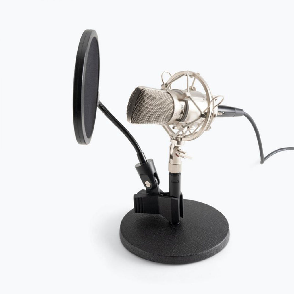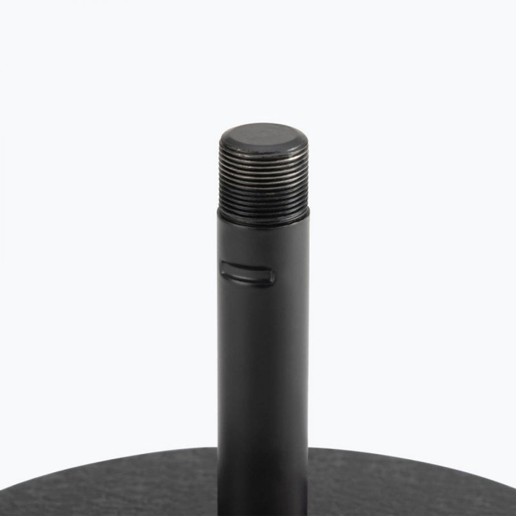 Our DS7100B Desktop Mic Stand excels at short-height miking applications. The removable straight 4" shaft mounts standard mic clips and accessories. A heavy base provides stability and balance for reliable mic support. Nonslip rubber feet reduce vibrations to prevent mic rumble. A model of functional simplicity, this stand makes quick work of setting up a mic on a desk or podium.