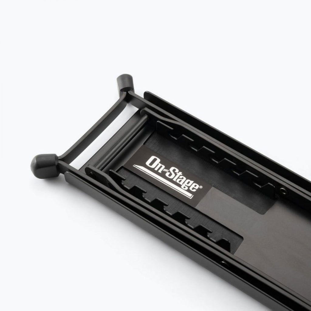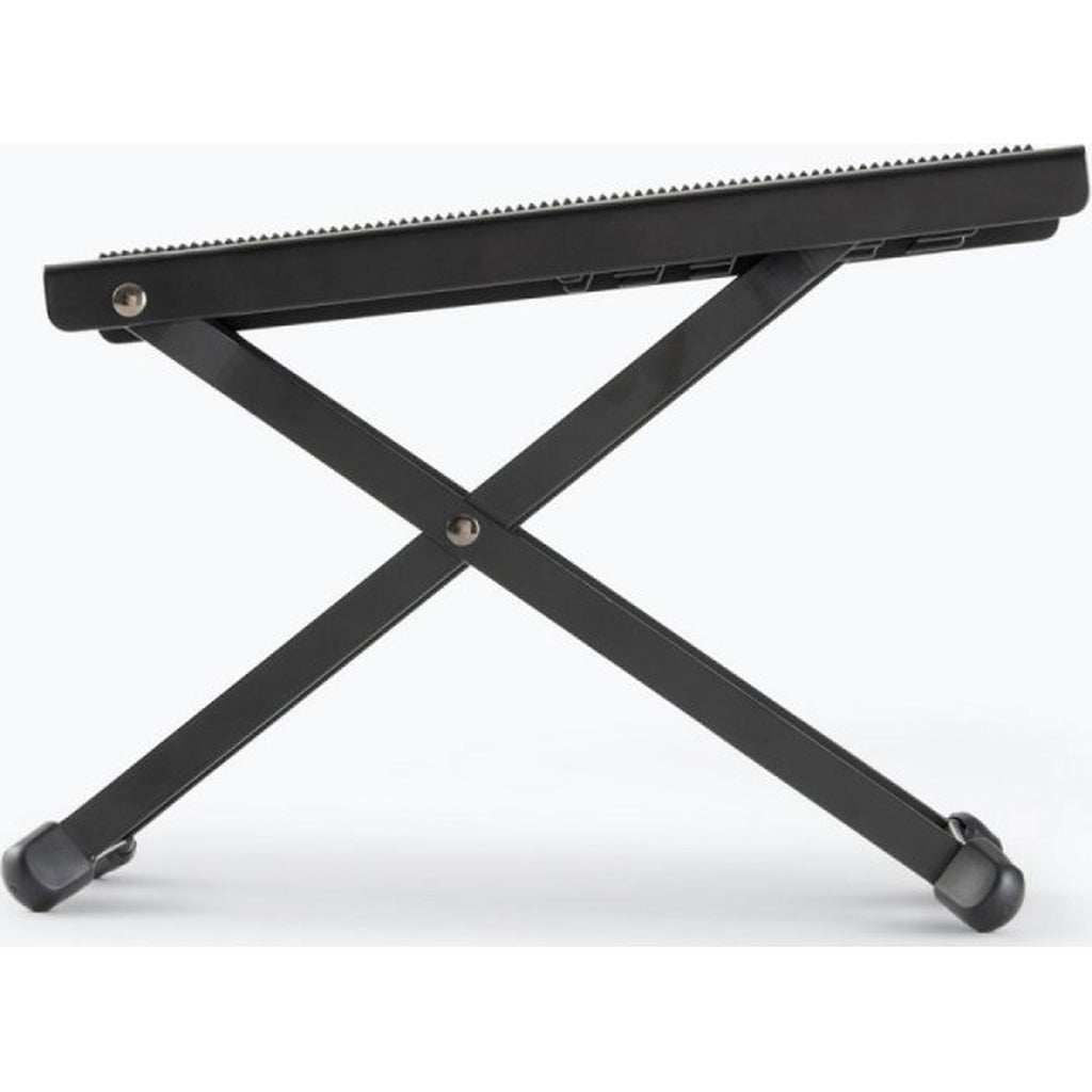 Our FS7850B Foot Stool enables guitarists to dial in an ergonomic playing position with its variable height. Rubber end caps on the base and a nonslip rubber foot pad provide exceptional stability and comfort. It conveniently folds flat for easy storage and transportation.