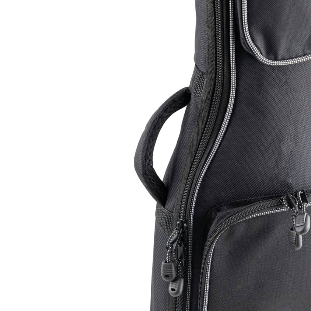 Safely store and transport a tenor-scale ukulele with our GBU4102 Tenor Ukulele Gig Bag. Along with a weather-resistant exterior that defends against the elements, the case features dense padding that shields the uke from damage. A smooth interior lining helps keep the instrument finish looking fresh. Two outer accessories compartments provide convenient access to supplies and tools. A textured rubber bumper at the bottom of the bag prevents slipping to keep the bag safely in place when rested on the floor. Two handles and removable adjustable backpack-style straps enable balanced, comfortable carrying. For ease of storage, a hanging loop is built into the top.