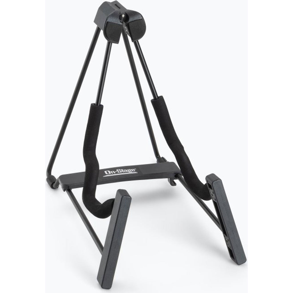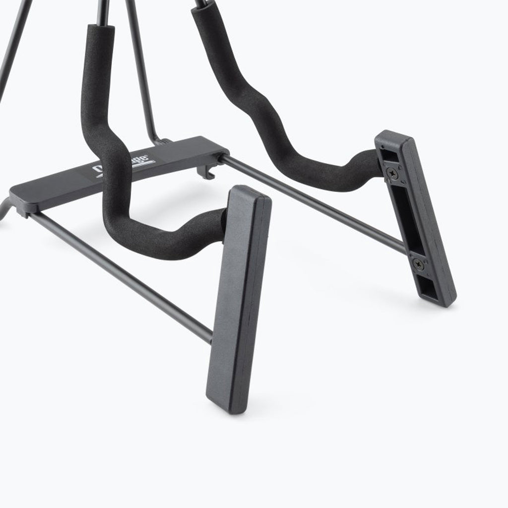 Compact and lightweight, our GS5000 Wire Folk Instrument Stand complements the portable nature of small stringed instruments. Still, it delivers the same function and durability as many full-size guitar stands, providing secure instrument storage alongside ease of instrument access. Just the right size for a guitar, mandolin, ukulele, violin, viola, lap steel guitar, or dulcimer, the yoke is stepped to form two sections that can securely hold instruments of various thicknesses. Padding on the yoke and backrests protects the instrument finish. An A-frame-inspired structure and nonslip feet deliver stability and balance for dependable instrument support. For efficient storage and transportation, the stand folds down so compactly that it fits in a backpack or gig bag.