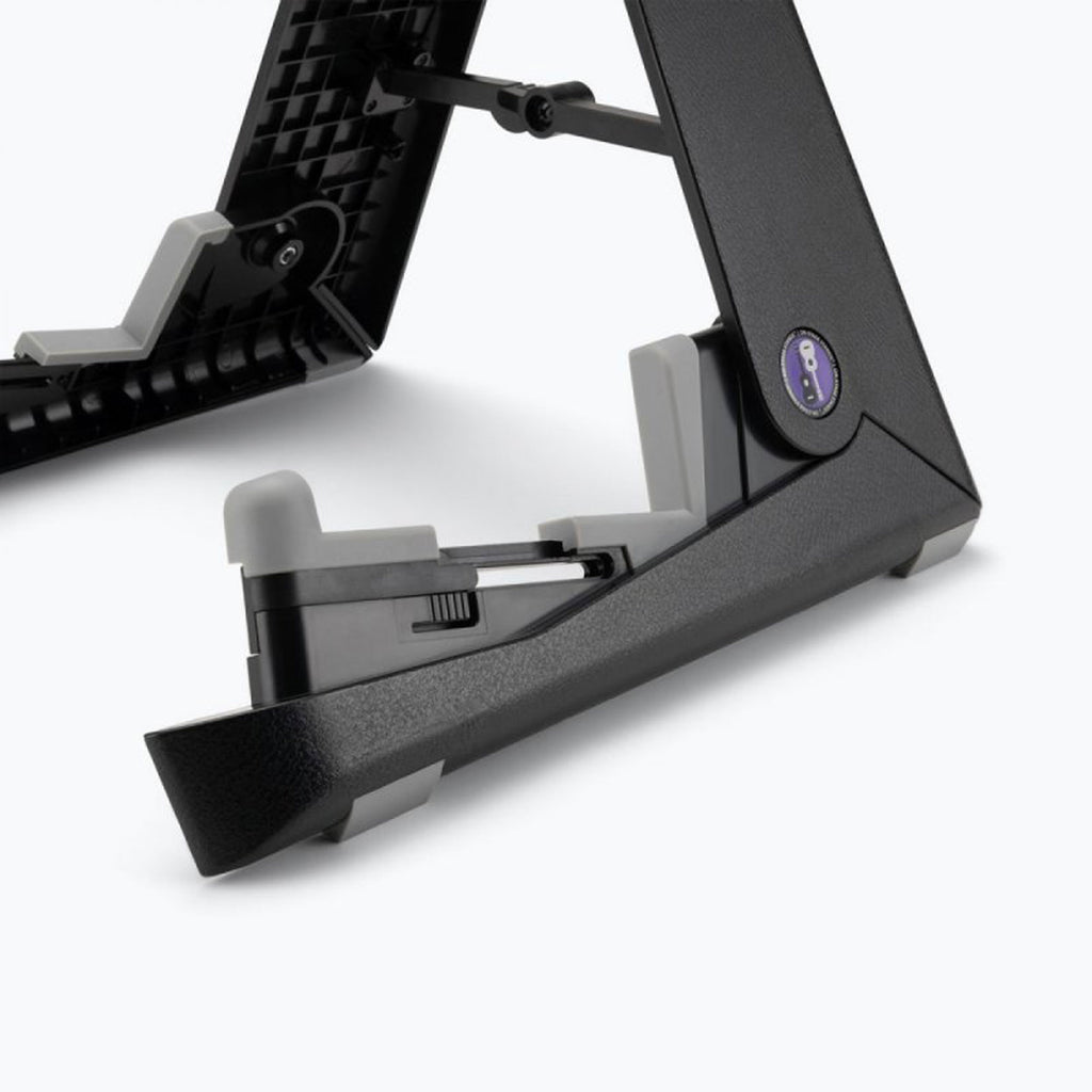 Ultra-compact and lightweight, our GS6500 Mighty Guitar Stand complements the portable nature of a guitar. Still, it delivers the same function and durability as many full-size guitar stands, providing secure instrument storage alongside ease of instrument access. The yoke depth adjusts to securely hold the thickness of an electric, acoustic, or bass guitar. An A-frame-inspired structure and nonslip feet deliver stability and balance for dependable guitar support. Padding on the yoke and backrests protects the instrument finish. For efficient storage and transportation, the stand folds down so compactly that it fits in a backpack or gig bag.
