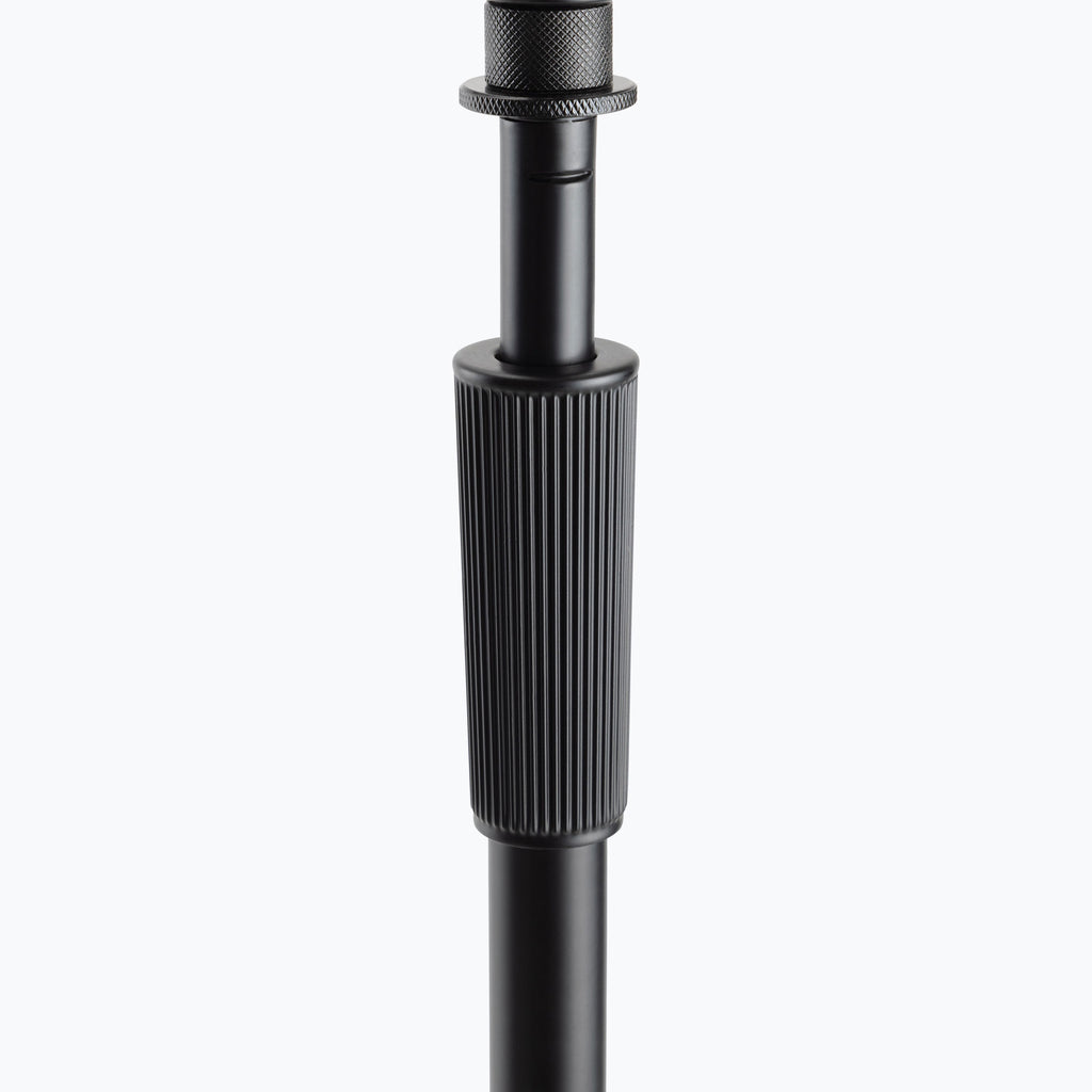 For rugged reliability, our MS9701TB mic stand with tripod base and telescoping boom arm features upgraded metal construction and a scratch-resistant finish. This stand includes a removable telescoping boom arm that adjusts in angle and length for precise mic placement, making it a versatile choice that excels in a variety of applications ranging from miking vocals to acoustic instruments to amps. The ergonomic clutch grip and nonrotating lower shaft facilitate height adjustments. Its tripod base delivers exceptional stability in any setting, even on irregular surfaces. The entire stand conveniently folds flat to facilitate storage and travel.
