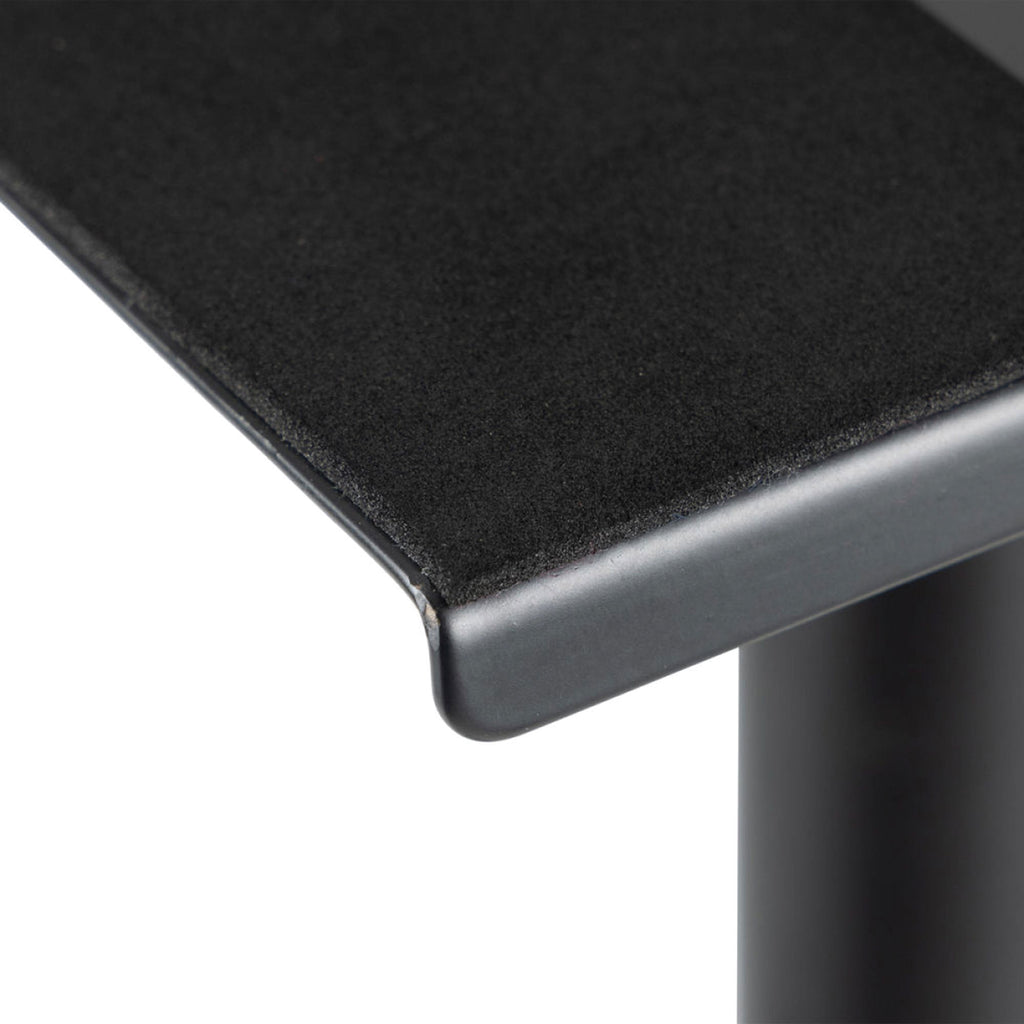 Sold in pairs, our SMS6000-P Studio Monitor Stands reliably support heavy speakers. Their adjustable height enables precise speaker placement to optimize sound in a variety of spaces. Padding on the speaker platforms provides a nonslip grip, protects speaker cabinets, and dampens vibration. The wide bases provide exceptional stability and offer two floor-contact options to accommodate hard surfaces or carpets.