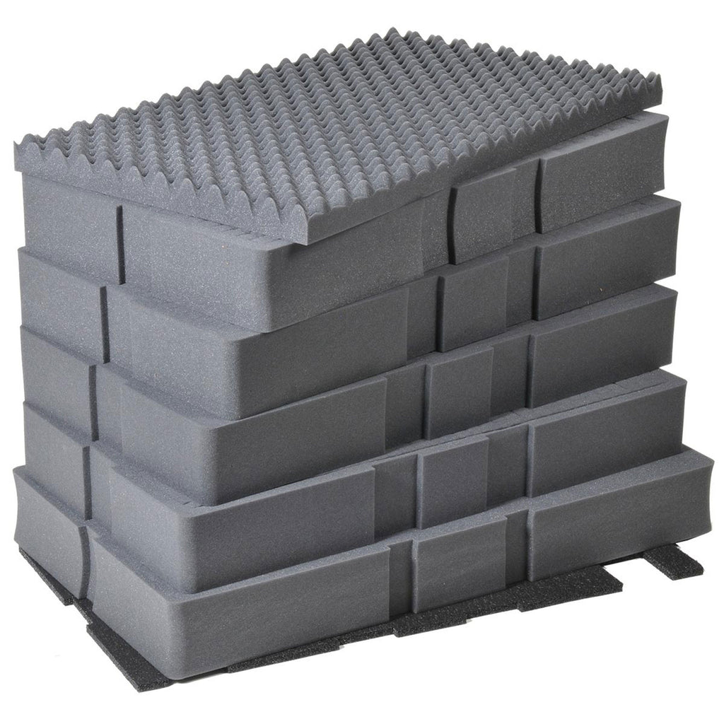 The Pelican 0501 Foam Set is a 7-piece replacement foam set for the Pelican 0500 Transport Case. It consists of one convoluted top lid foam, 1 solid top lid foam, four center foam sections and one bottom foam base pad.