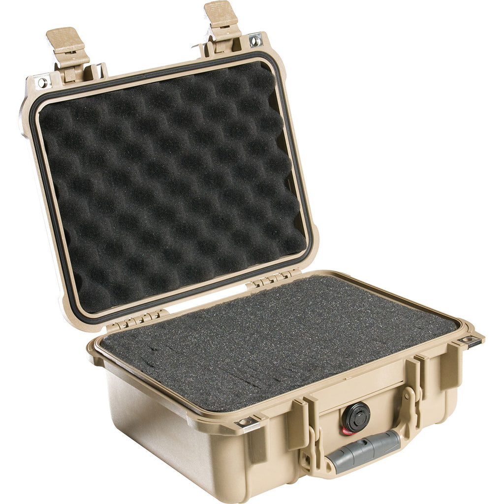 The Pelican 1400 Case with Foam is an unbreakable, watertight, airtight, dustproof, chemical-resistant and corrosion-proof hard case used to carry any kind of equipment that needs to be protected from the elements. It is made of Ultra-High Impact structural copolymer that makes it extremely strong and durable. It has a 0.25" (6.4mm) neoprene o-ring, and easy-open double throw latches that seal perfectly. It includes an automatic pressure equalization valve for quick equalization after changes in atmospheric pressure. It is carried by a folding molded handle.