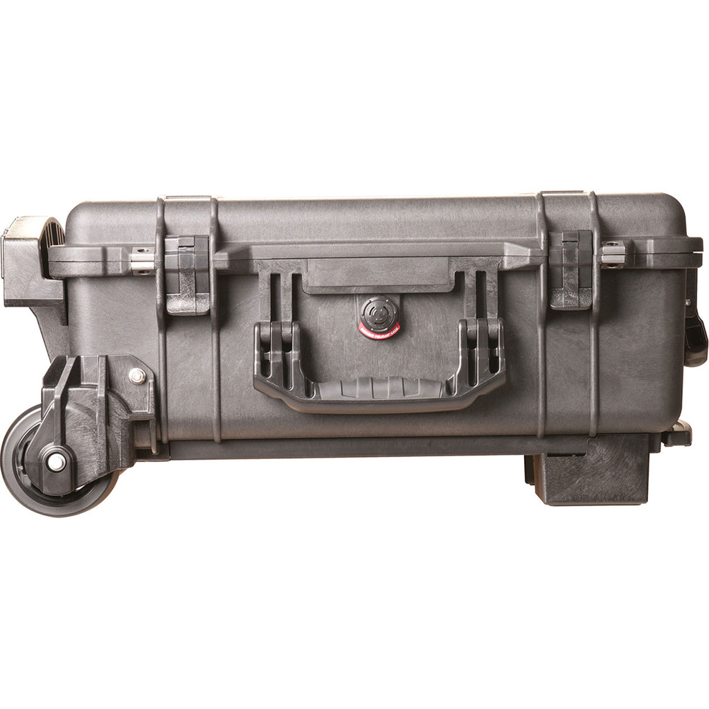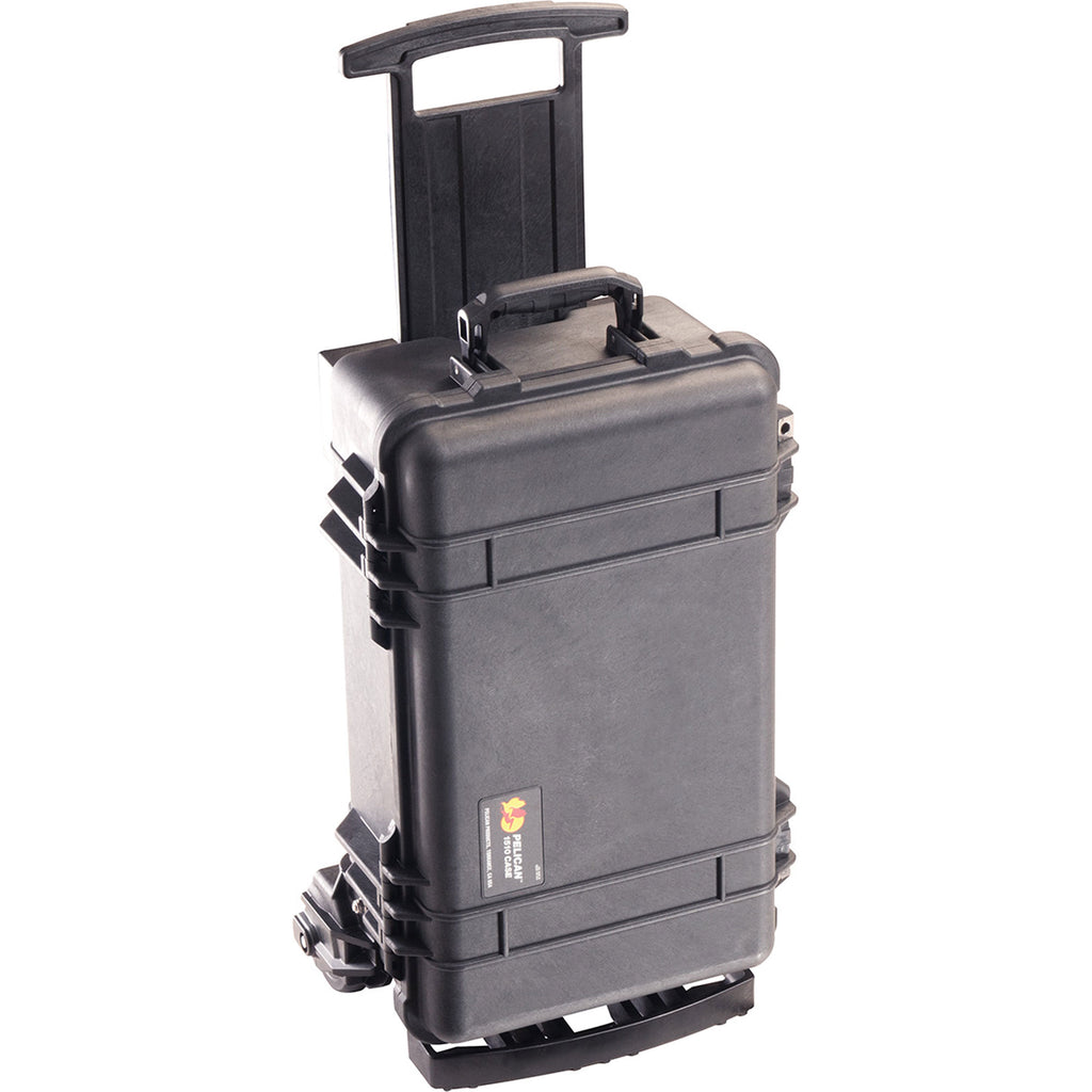The 1510M Case from Pelican is an airtight, crushproof, dust and water resistant hard case for use in rugged terrain. It includes a mobility kit which adds a retractable extension handle and a built-in dolly system with 4" polyurethane wheels and stainless steel ball bearings. You can travel knowing that your gear inside this case is protected thanks to its solid polypropylene walls and watertight polymer o-ring seal. An automatic purge valve allows you to open the case after changes in atmospheric pressure at any altitude, making it suitable for air travel. The double-throw latches on the side of the case can withstand almost 440 lb of pressure, yet allow you to open and close the case with a light push or pull. The Pick N Pluck foam inside the case allows you to custom fit your gear into the large compartment of the case. Stainless steel hardware and padlock protectors prevent corrosion while providing extra strength against theft.