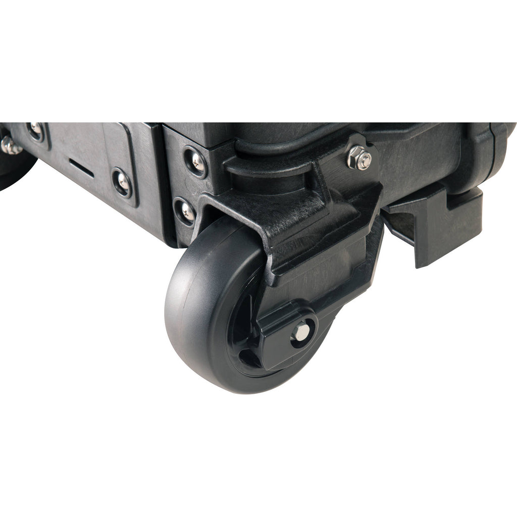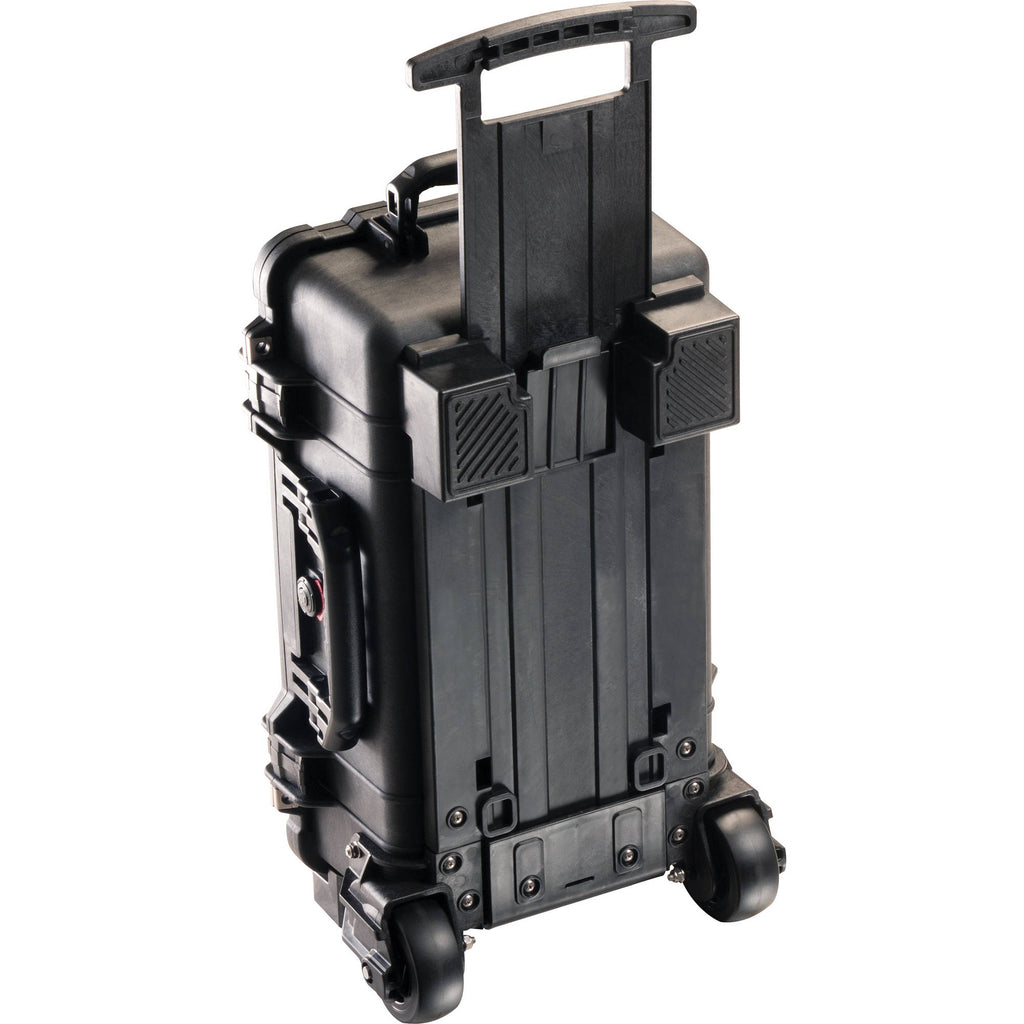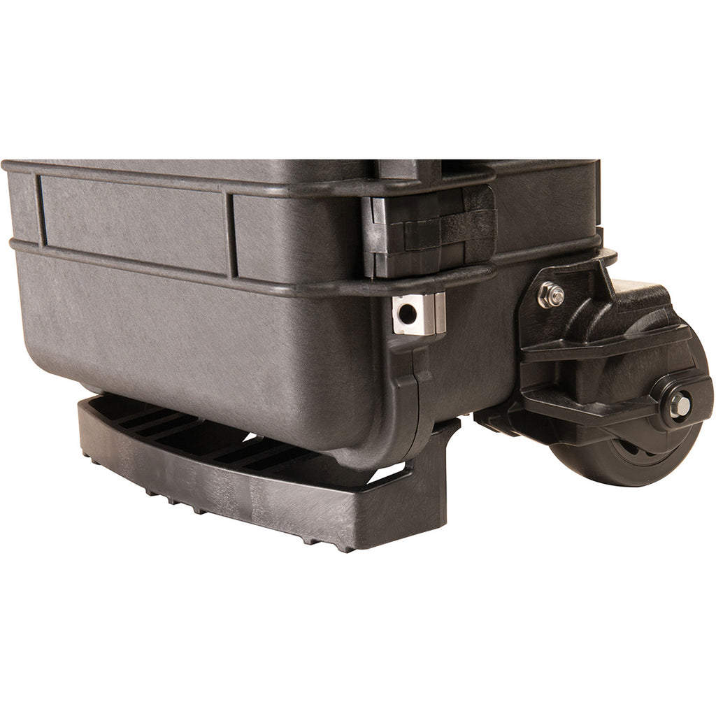 The 1510M Case from Pelican is an airtight, crushproof, dust and water resistant hard case for use in rugged terrain. It includes a mobility kit which adds a retractable extension handle and a built-in dolly system with 4" polyurethane wheels and stainless steel ball bearings. You can travel knowing that your gear inside this case is protected thanks to its solid polypropylene walls and watertight polymer o-ring seal. An automatic purge valve allows you to open the case after changes in atmospheric pressure at any altitude, making it suitable for air travel. The double-throw latches on the side of the case can withstand almost 440 lb of pressure, yet allow you to open and close the case with a light push or pull. The Pick N Pluck foam inside the case allows you to custom fit your gear into the large compartment of the case. Stainless steel hardware and padlock protectors prevent corrosion while providing extra strength against theft.