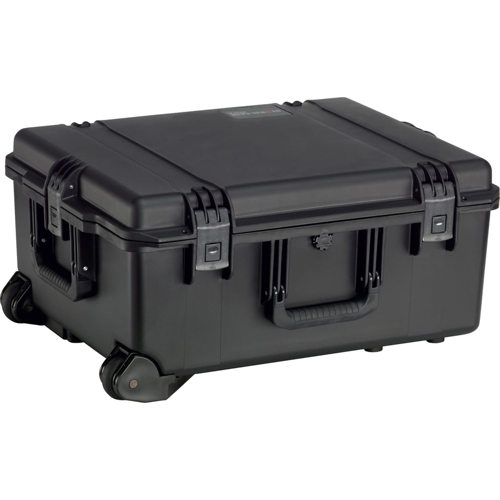 The Pelican iM2720 Storm Trak Case with Foam is an injection-molded case made of HPX high performance resin, that is virtually unbreakable, dent-resistant and shatter-resistant. It is tough, rugged, lightweight, airtight and watertight. There is a permanently attached Vortex valve that automatically adjusts air pressure without letting in water, and won't unscrew from the case. Press & Pull latches open with the push of a button, yet stay closed securely under impact or stress. The case has unbreakable molded-in hasps that allow the addition of standard size padlocks. It has hinges with integrated feet that hold fast under impact, and create a flat surface for upright stability. It is carried by three double-layered, soft-grip, solid-core handles, lightweight retractable, telescoping handle and rugged in-line wheels.