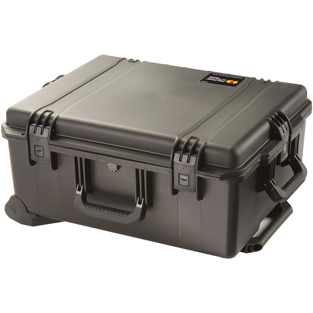 The Hardigg iM2720 Storm Trak Case without Foam is an injection-molded case made of HPX high performance resin, that is virtually unbreakable, dent-resistant and shatter-resistant. It is tough, rugged, lightweight, airtight and watertight. There is a permanently attached Vortex valve that automatically adjusts air pressure without letting in water, and won't unscrew from the case. Press & Pull latches open with the push of a button, yet stay closed securely under impact or stress. The case has unbreakable molded-in hasps that allow the addition of standard size padlocks. It has hinges with integrated feet that hold fast under impact, and create a flat surface for upright stability. It is carried by three double-layered, soft-grip, solid-core handles, lightweight retractable, telescoping handle and rugged in-line wheels.