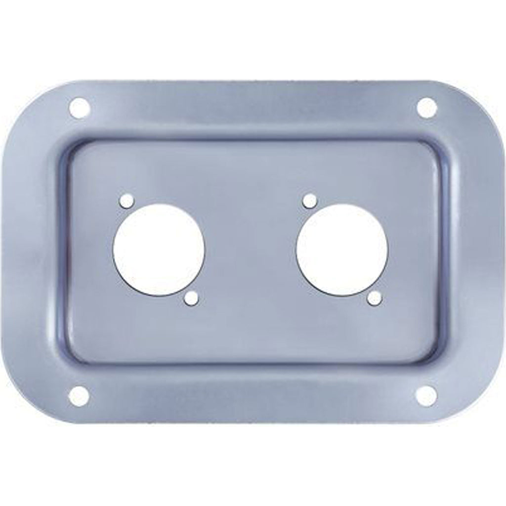 Steel dish pre-punched for mounting two Neutrik "D" Series and/or Speakon NL2/NL4 panel mount connectors . Constructed of heavy-duty 1.2 mm/.047" steel. PennBrite plated finish.