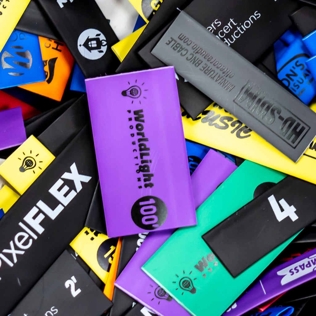 Graphics, text, serial numbered or combinations of all can be imprinted on heat shrink tubing at performanceaudio.com. There are no tooling or set-up charges on text printing, with the exception of a modest charge when graphics are involved may apply.