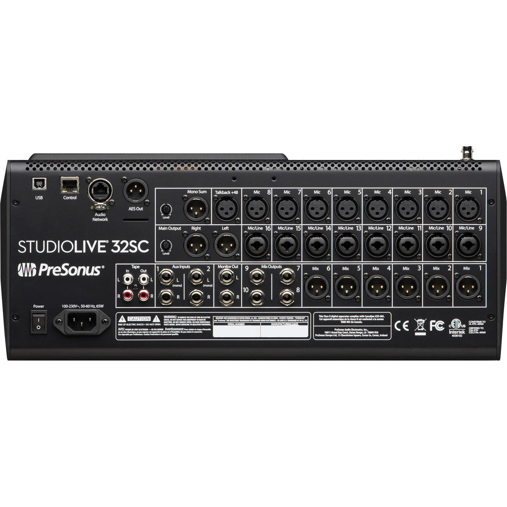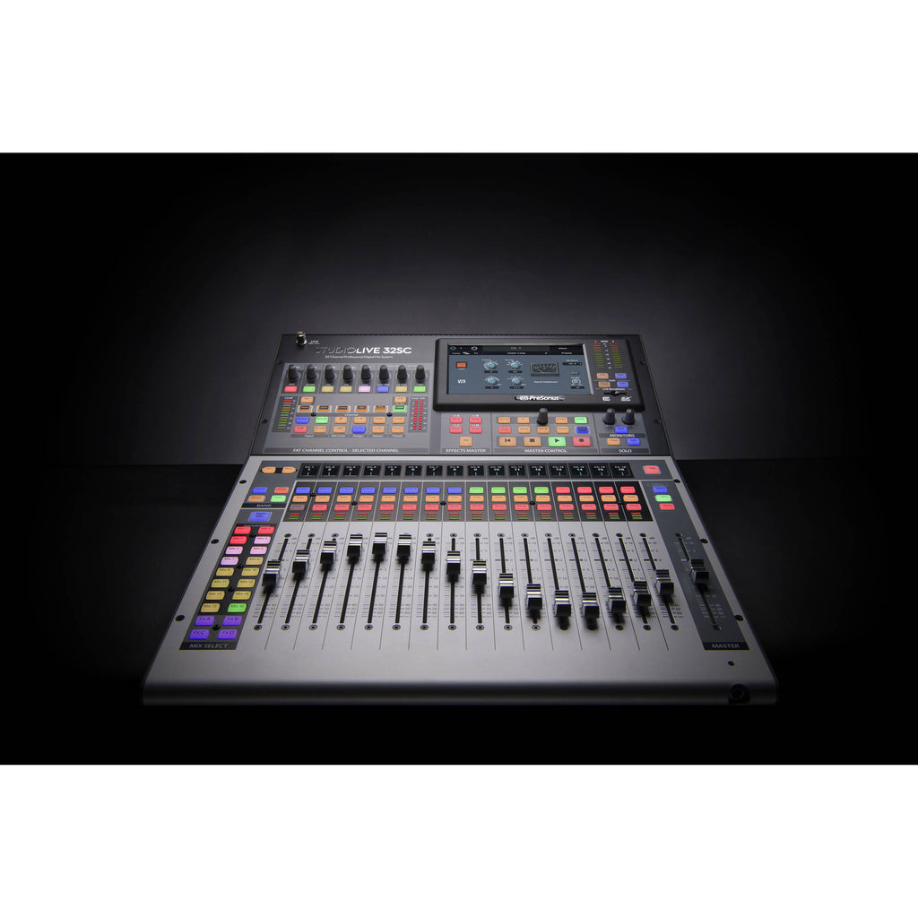 A 40-channel powerhouse packed inside a portable, rack-mountable frame, the StudioLive 32SC is a compact digital mixer that can compete with its bigger brothers, particularly when you consider its price. Thanks to AVB, it's easily expandable - readily networking with EarMix 16M personal monitor mixers for customized onstage mixes and PreSonus NSB-series stage boxes for additional inputs. The StudioLive 32SC's 16 FlexMixes can be individually configured to function as aux buses, subgroups, or matrix mixes - your routing options will border on limitless. The Fat Channel processing section employs expandable, plug-in options with vintage-style EQ and classic compression options on every input channel and output bus.