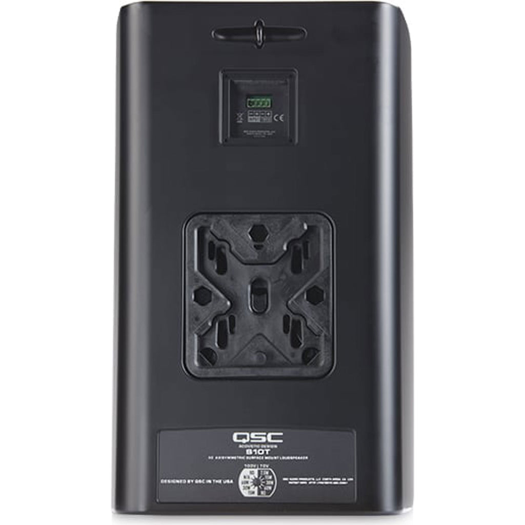 The QSC AcousticDesign AD-S10T is a surface mounted 70/100V, 10" two-way loudspeaker system, ideally suited for a wide variety of foreground and background sound reinforcement applications.