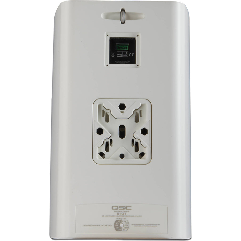 The QSC AcousticDesign AD-S10T is a surface mounted 70/100V, 10" two-way loudspeaker system, ideally suited for a wide variety of foreground and background sound reinforcement applications.
