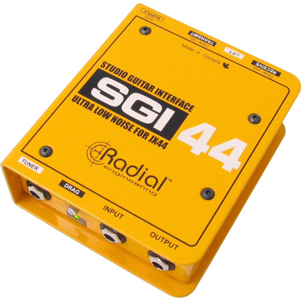 The SGI-44 is a long-haul remote interface designed to be positioned at the pedalboard to allow noiseless interfacing of pedals and a tuner with the Radial JX44. It features an XLR-F receive from the JX44, 1/4" send and return for effects pedals, tuner out and XLR-M return output to the JX44. Standard XLR cables may be run to distances of 100 meters (300 feet) making the SGI-44 ideal for live concert stages and for driving guitar signals to an iso-booth in the studio.