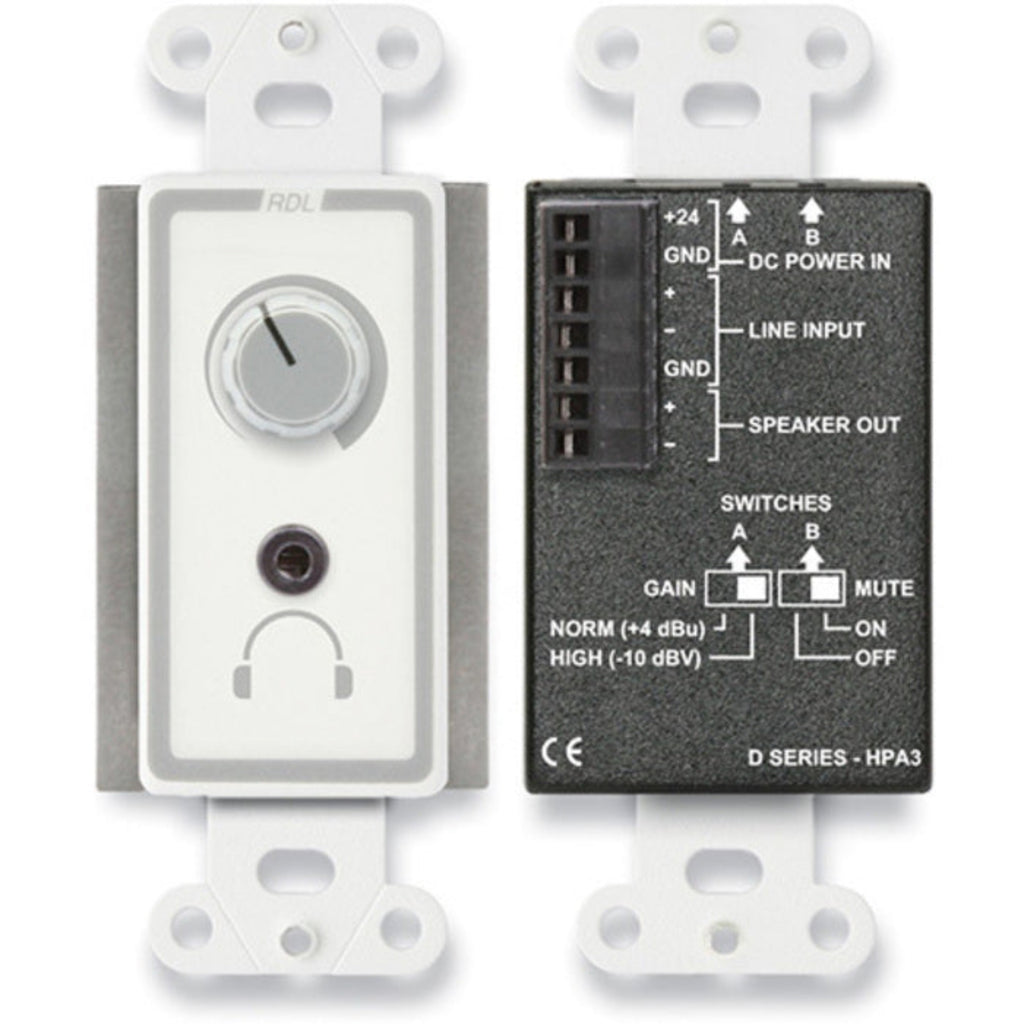 RDL D-HPA3 3.5 Watt Audio Power & Headphone Amp on Decora Plate (White)