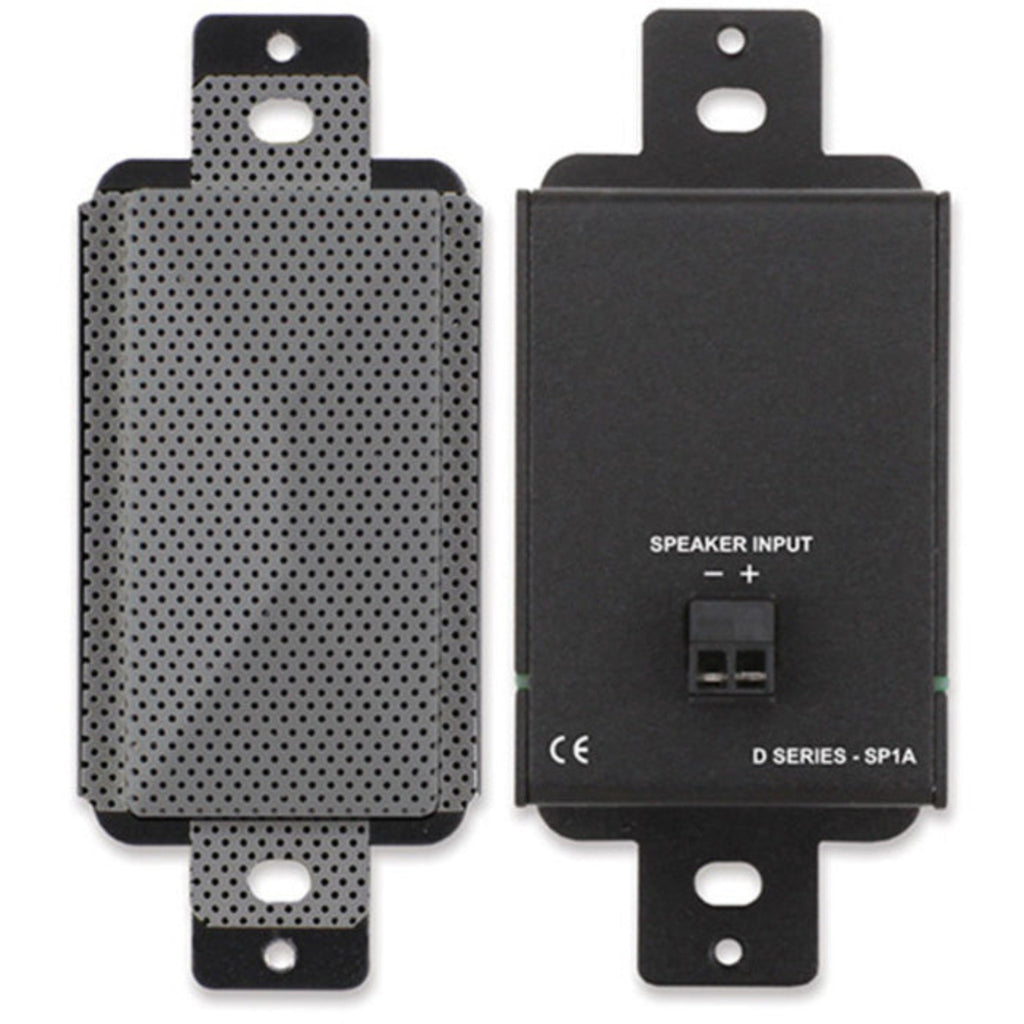 The D SERIES-SP1A is a compact 8 ohm loudspeaker that delivers rich, detailed sound in Decora-compatible wall or chassis mounts. The driver is constructed of materials found in premium larger speakers. The unique steel enclosure provides full baffling in a tightly sealed rigid structure. This produces sonic presence within an extended frequency range expected from larger speakers. Internal filtering rolls off out-of-band frequencies to reduce distortion and increase peak power capability. Dispersion covers a hemispherical area of nearly 180 degrees with the speaker mounted in a wall.