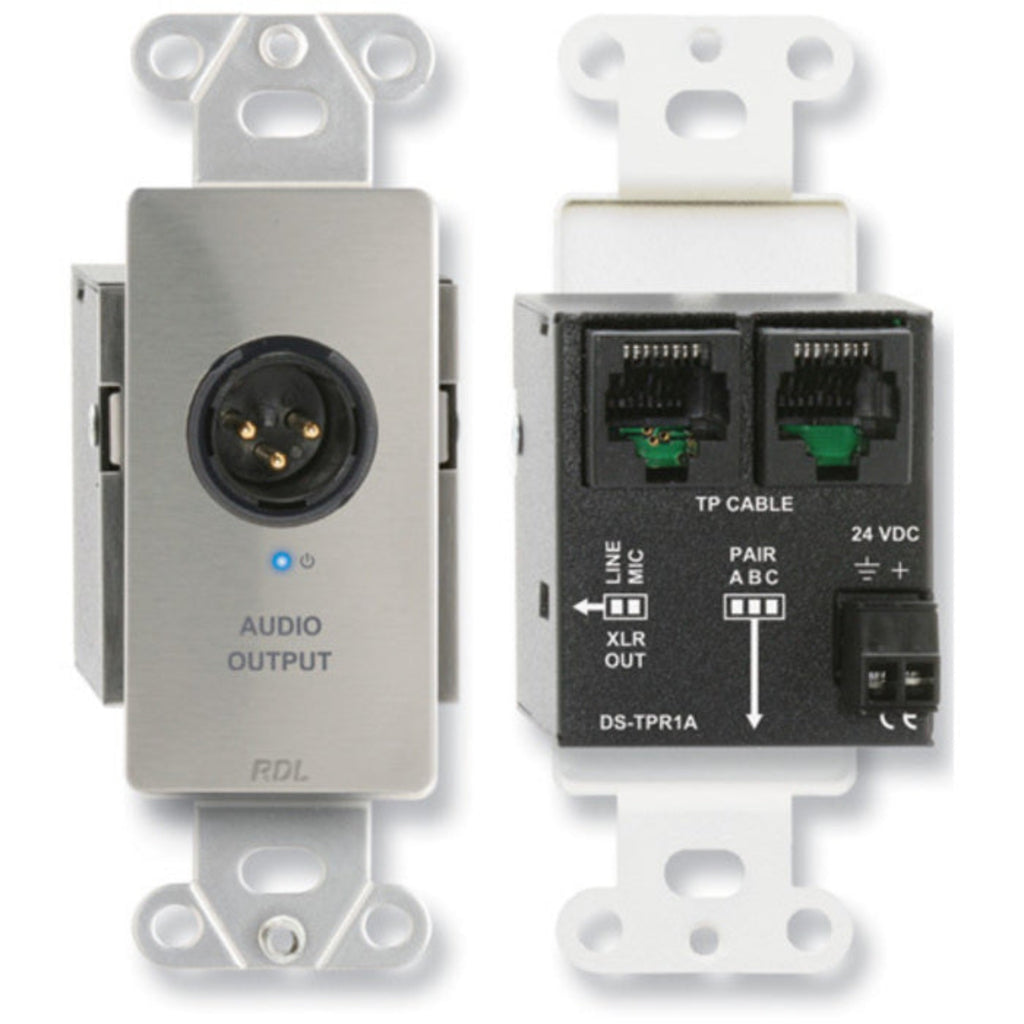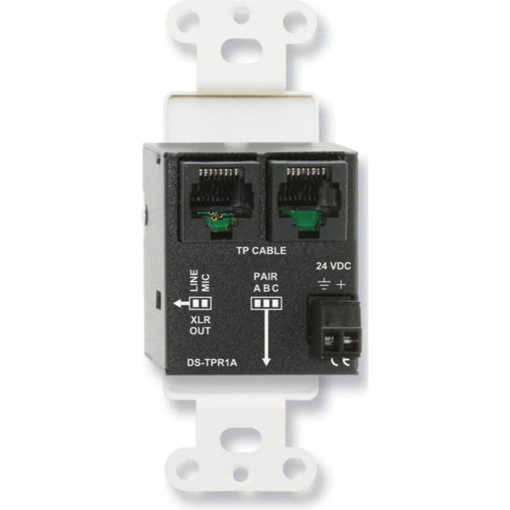 Active Single-Pair Receiver on Decora Wall Plate - Twisted Pair Format-A - XLR Microphone/Line Output - Stainless Steel