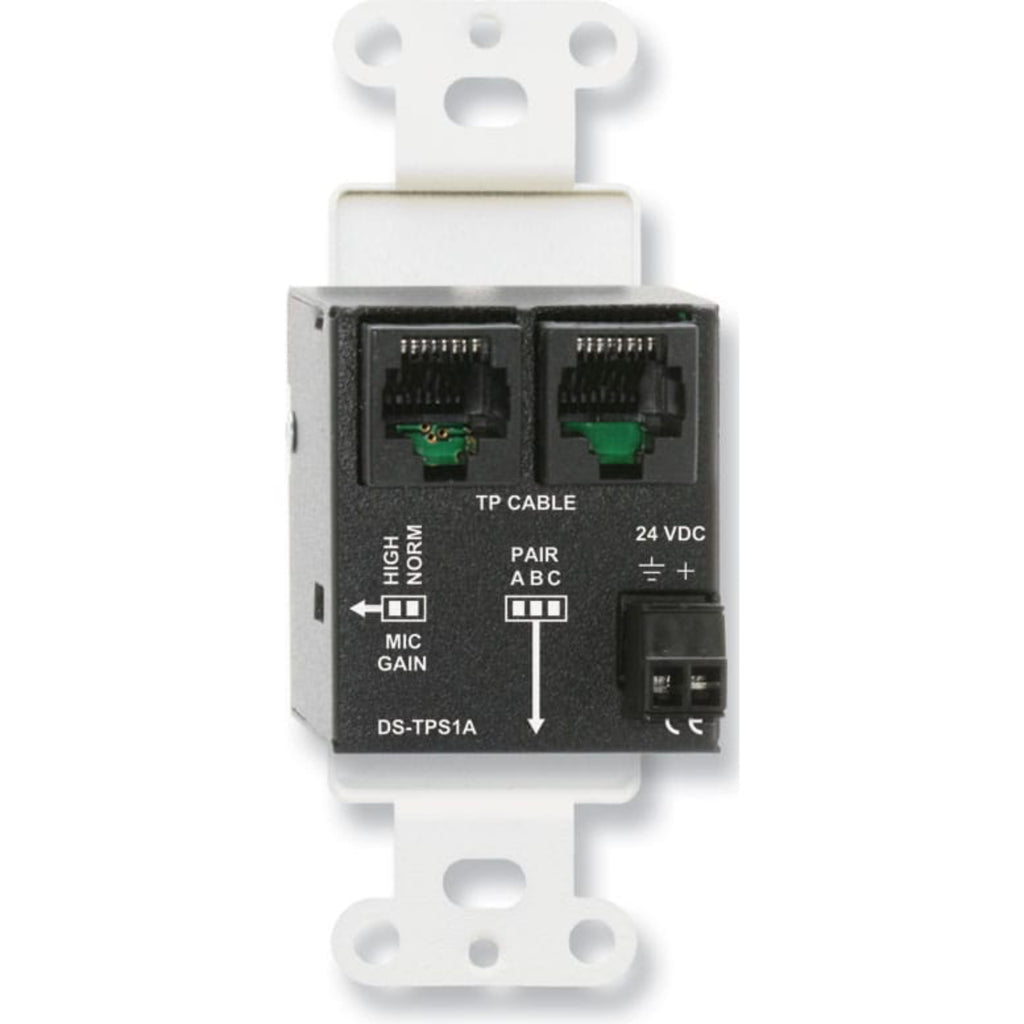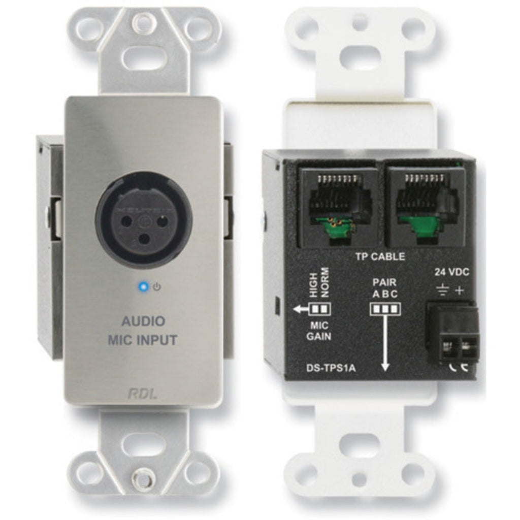 Active Single-Pair Sender on Decora Wall Plate - Twisted Pair Format-A - XLR Microphone Input with Phantom - Stainless Steel