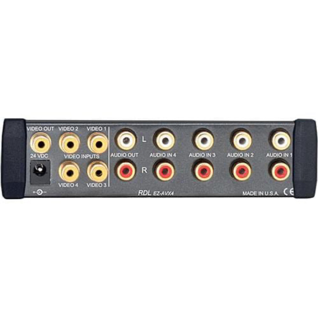 The EZ-AVX4 is a stereo audio and composite video source selector. Line-level audio and video outputs are provided on RCA jacks. This unit is ideal as a four input source selector feeding an associated video monitor or recorder. The EZ-AVX4 is used in stores, houses of worship, restaurants, clubs, security systems and commercial A/V systems.