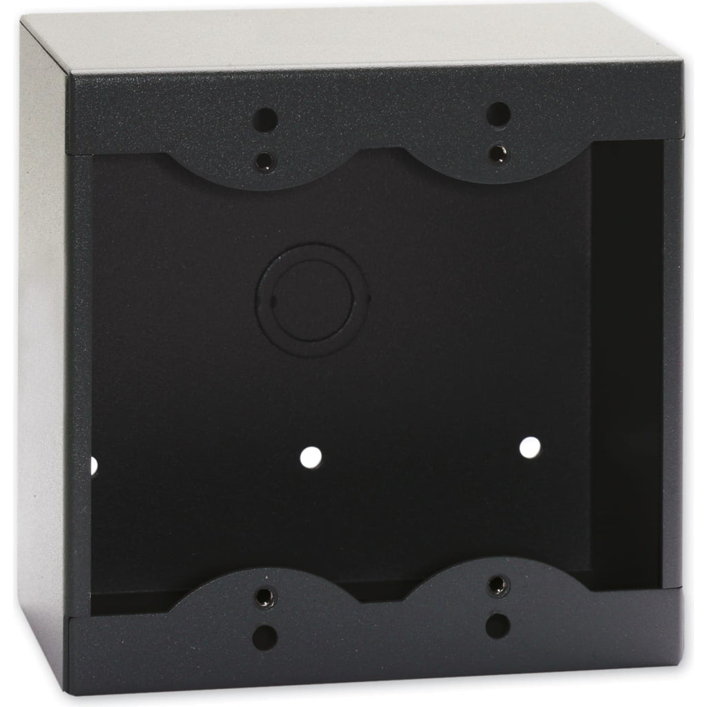 The SMB-1, SMB-2, SMB-3 and SMB-4 surface mount boxes hold one, two, three or four Decora-style products, including RDL remote controls and connector plates. Knockouts are provided for fastening standard metric or North American conduits to the rear of the box and to either the upper or lower surface, depending on the orientation of the box when it is mounted. The sides and top or bottom of the box maintain a smooth surface for a finished appearance superior to that of a standard electrical box. Model numbers with a suffix "W" are white, with a suffix "B" are black and with a suffix "G" are gray to complement RDL stainless steel remote controls and plates. All SMB- boxes are constructed from welded steel with a high quality powder coated finish.