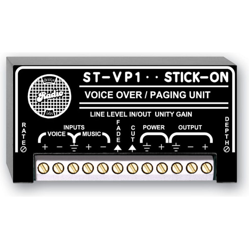 The ST-VP1 is intended for voice-over paging with user adjusted and controlled FADE or CUT between two input sources. This unit is also perfect for voice-overs where precise and consistent fade levels are required. Automatic operation can be achieved when used in conjuction with RDL's ST-ACR products.