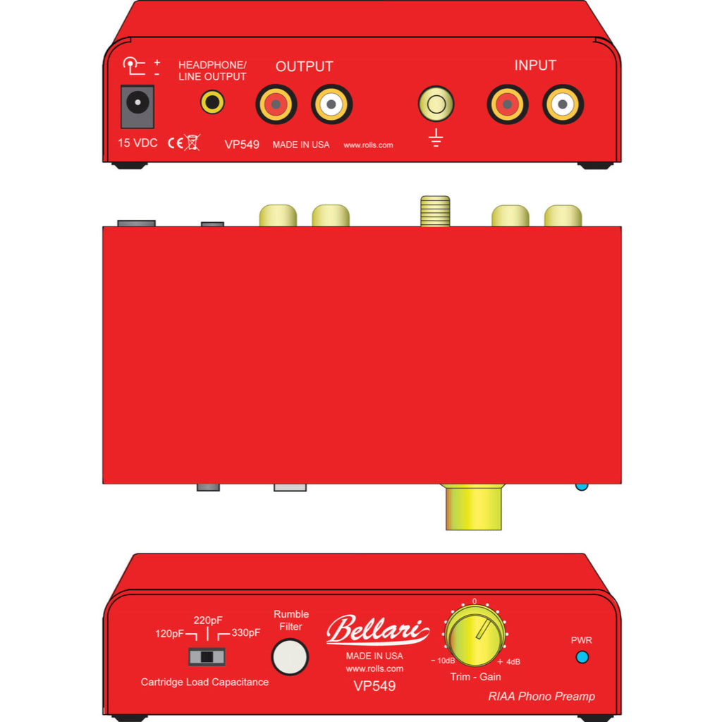 The Bellari VP549 phono pre has excellent true sound resolution. It's tone center is right in the middle of the music. It performs very well on the extremes, and never looses its solid performance in the meat of the music. Has a well rounded sound when needed, but has a very surprising shimmer when called on. The VP549 is bold, yet has a very surprising attack that will take your rig to the next level. Hundreds of hours went in to listening and improving the design. All Bellari products are hand built in Salt Lake City, Utah by people who care about high quality music. No surface mount parts are ever used at Bellari.