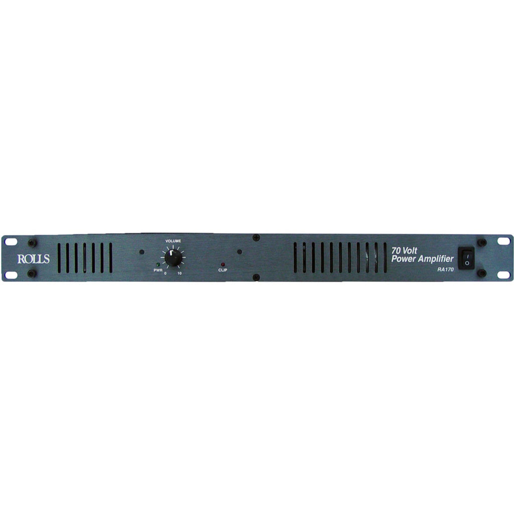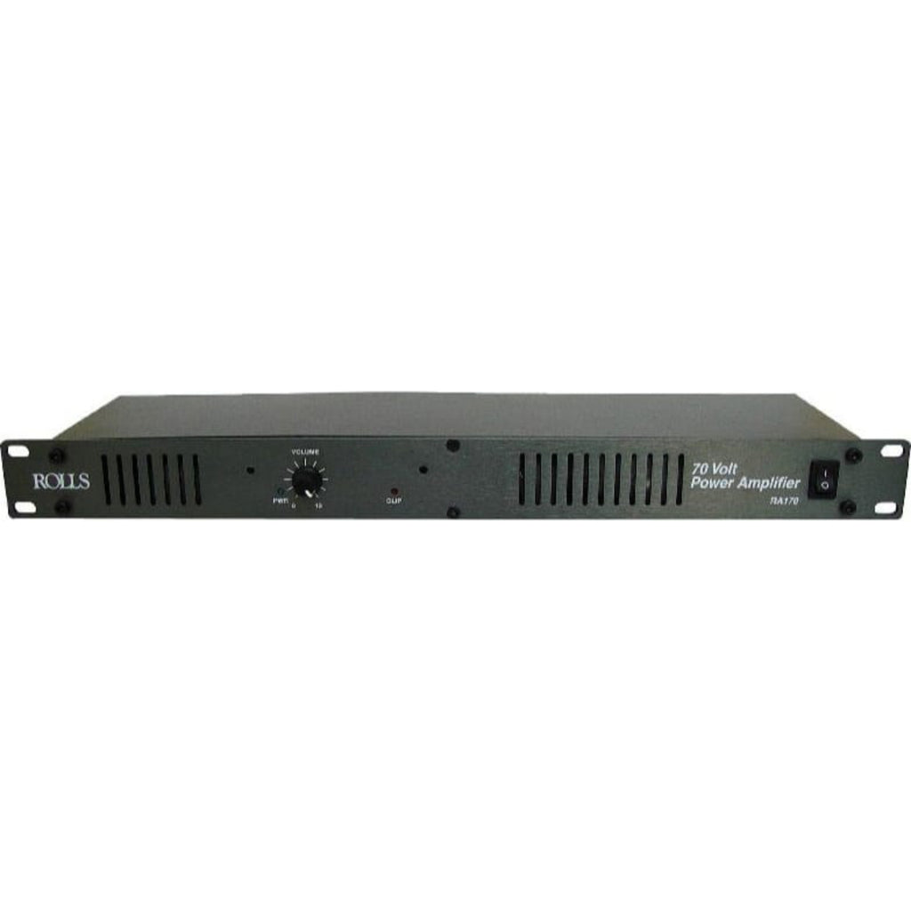 The RA170 Power Amplifier was designed especially for the installation contractor. The RA170 is a single rack-space, mono unit with a choice of an RCA or 1/4" unbalanced input. The 70 volt speaker outputs are provided via spring-loaded terminals - no transformer is required for speaker connection. The front panel includes a Power indicator LED, a Volume control, and two Clip LEDs which indicate circuitry overload. The output circuitry is protected from momentary shorting and excessive load by a specially designed protective circuit.