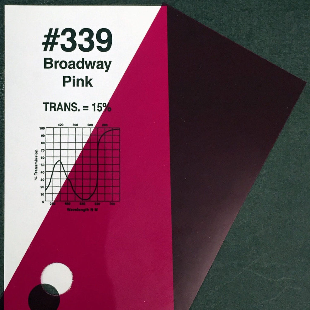 A deep, saturated pink created for musicals and specials. Excellent for down and backlighting. (Transmission = 15%).