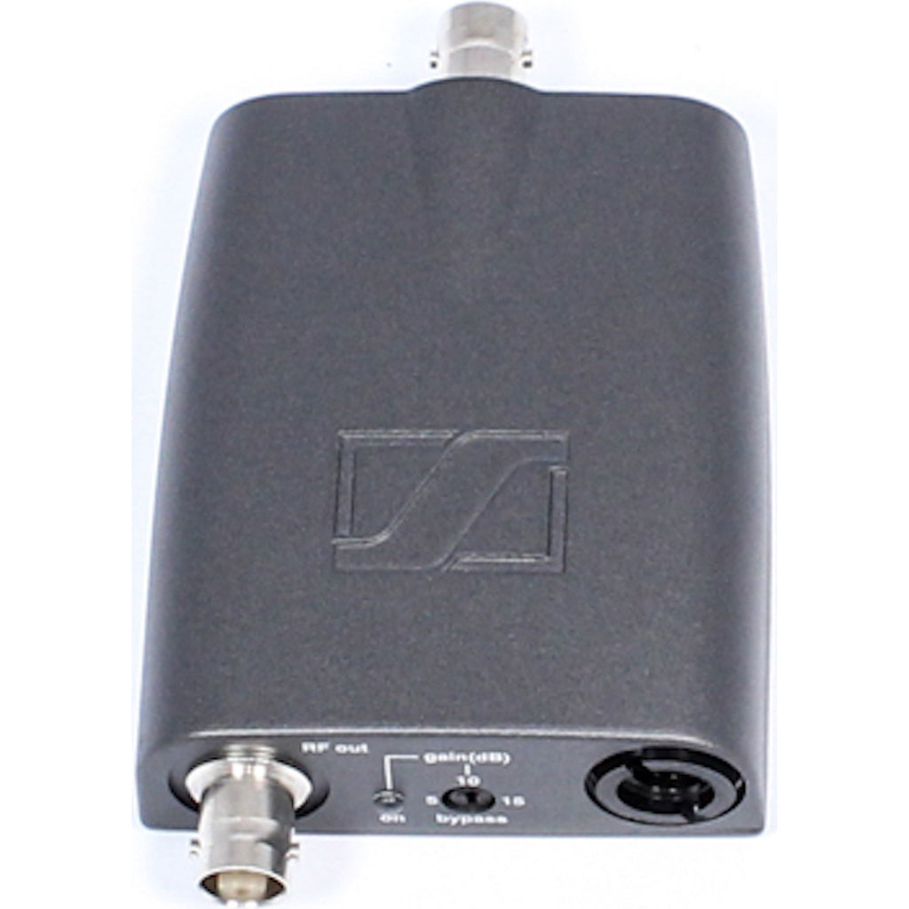 The remote-controlled antenna booster contains eight highly selective filters that each allow a 24 MHz frequency window to pass. This adds significant safety to the system, as unwanted signals are blocked directly before the first active component. The frequency window can be remotely selected from the receiver. The linear RF amplifier with very high resistance to intermodulation can compensate for cable losses of up to 14 dB. The booster and receiver together check the cable loss on the RF cable and adjust the gain automatically.