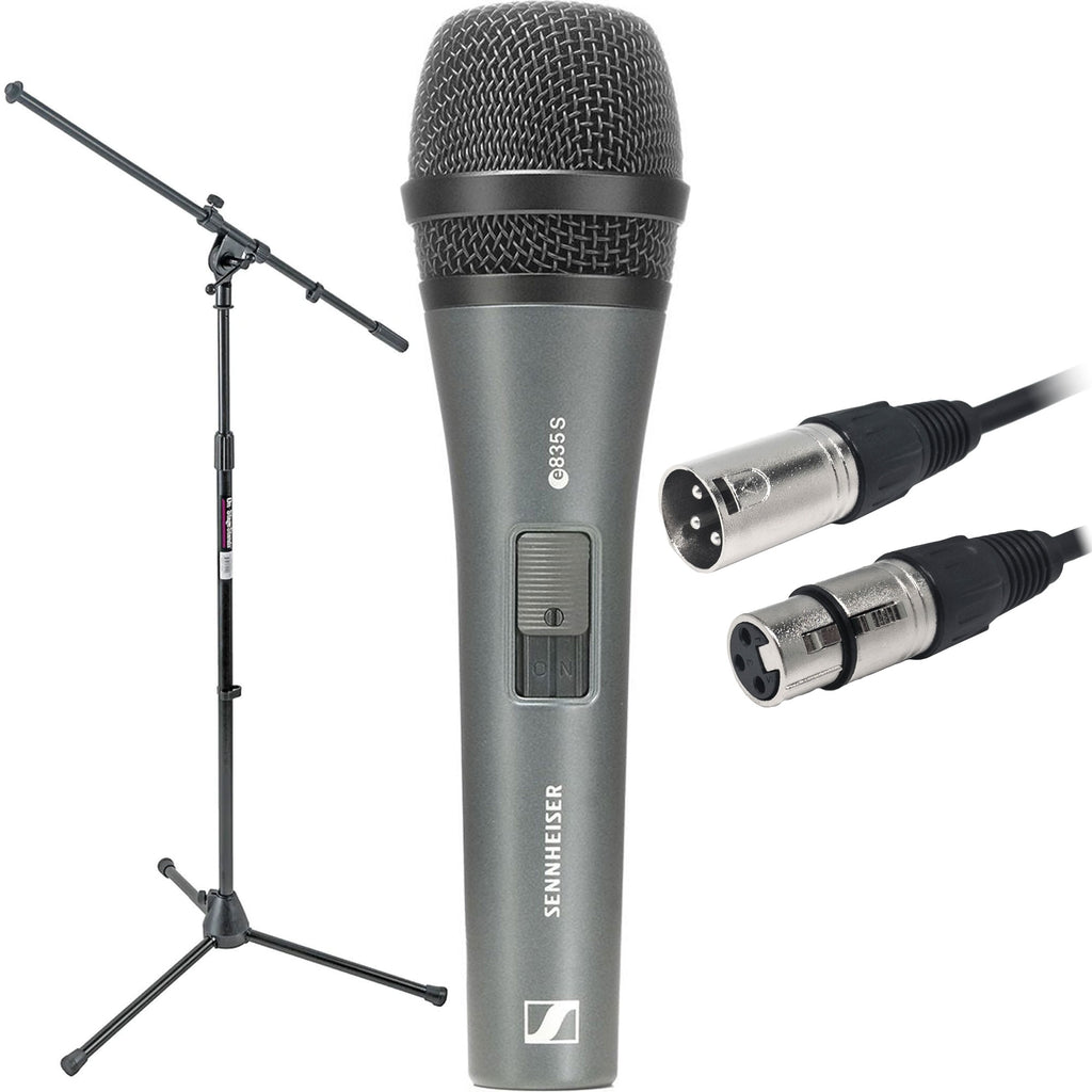 Performance Audio Exclusive Savings Bundle with Sennheiser e 835-S Dynamic Vocal Microphone with On/Off Switch, Includes On-Stage MS7701B Euro-Boom Mic Stand, 20' Professional XLR Mic Cable, Stand Adapter, and Zippered Carrying Case