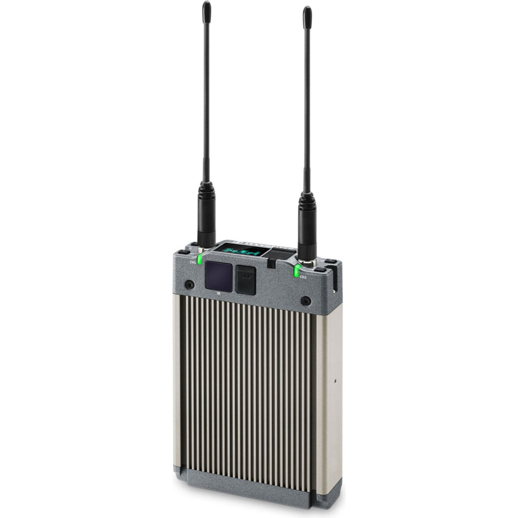 Two-channel slot-in receiver. Can connect to Sennheiser analogue HDX and HiDyn+ systems as well as D6000/9000 systems. Switching bandwidth of 184 MHz and built in convenient functions for a fully automated setup.